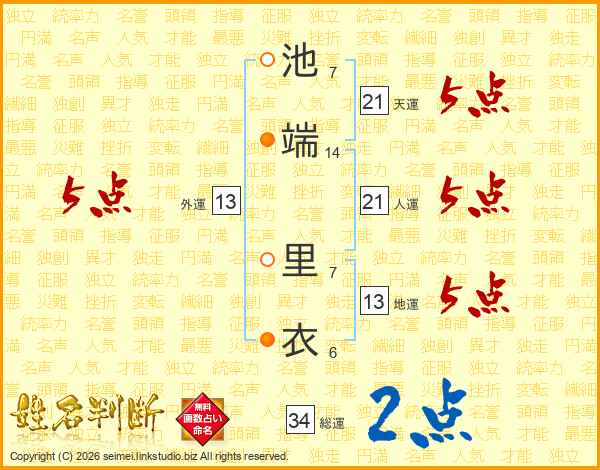 池端里衣さんの天運は21画の5点!
