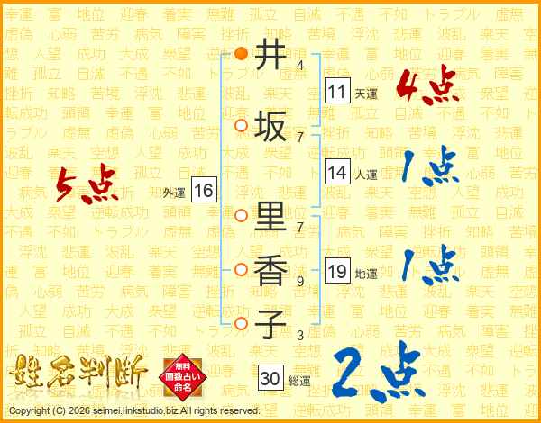 井坂里香子さんの外運は16画の5点!