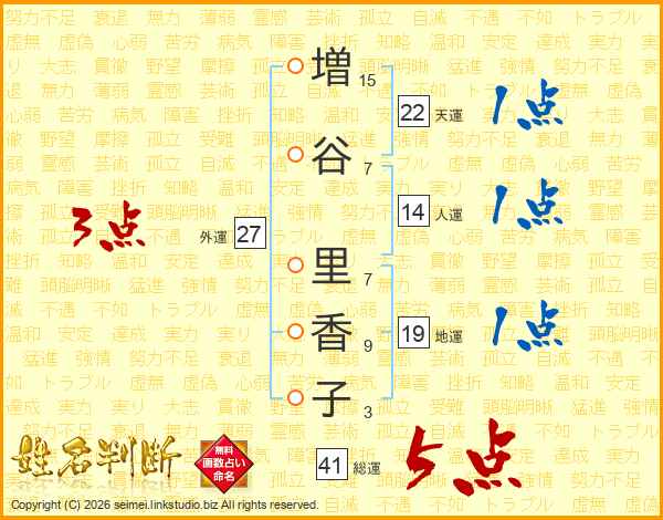増(15画)谷(7画) 里(7画)香(9画)子(3画)