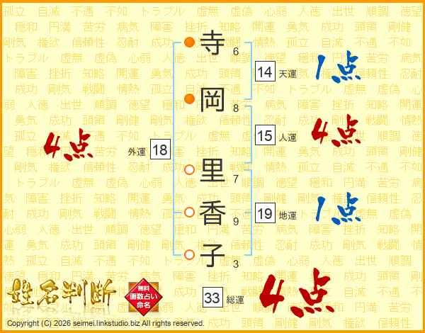 寺岡里香子さんの総運は33画の4点!