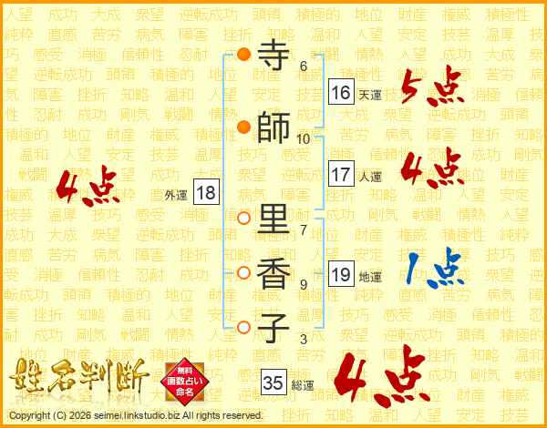 寺(6画)師(10画) 里(7画)香(9画)子(3画)