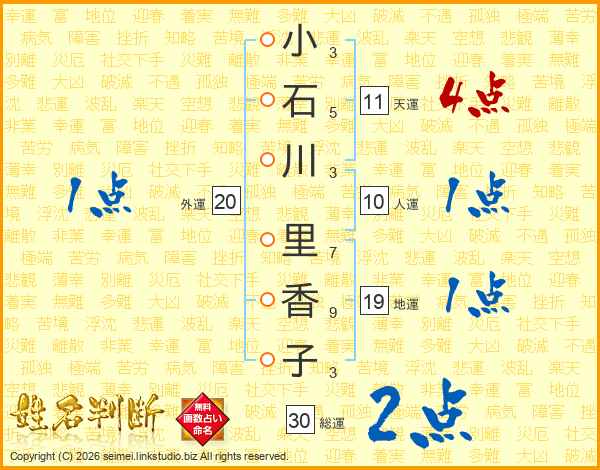 小石川里香子さんの総運は30画の2点!