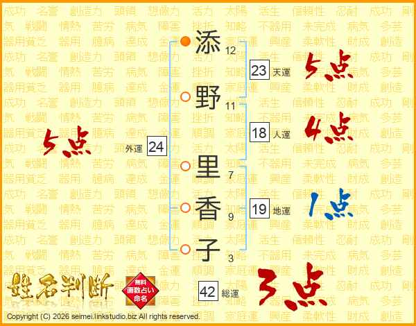 添野里香子さんの外運は24画の5点!