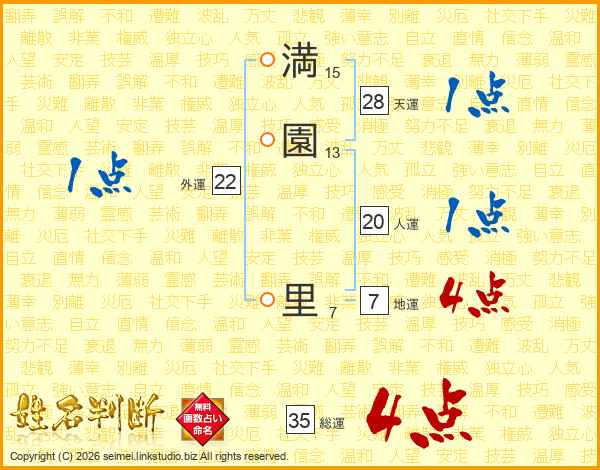 満園里さんの総運は35画の4点!