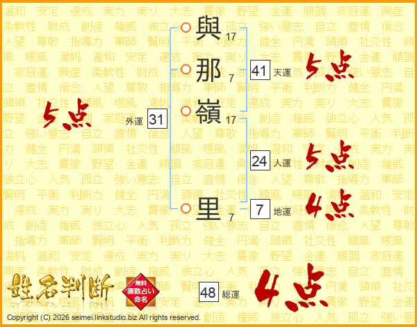 與那嶺里さんの総運は48画の4点!