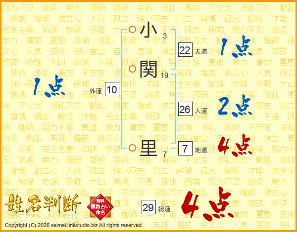 小関里さんの総運は29画の4点!