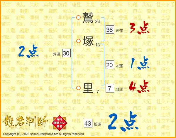 鷲塚里さんの総運は43画の2点!