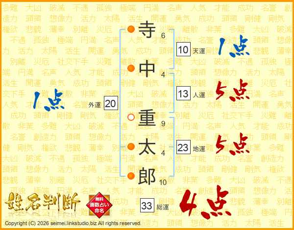 寺中重太郎さんの総運は33画の4点!