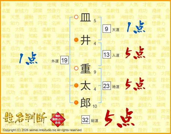 皿(5画)井(4画) 重(9画)太(4画)郎(10画)
