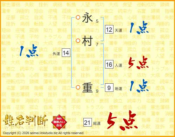 永村重さんの総運は21画の5点!
