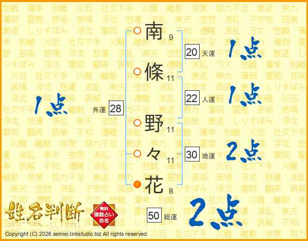 南條野々花さんの地運は30画の2点!