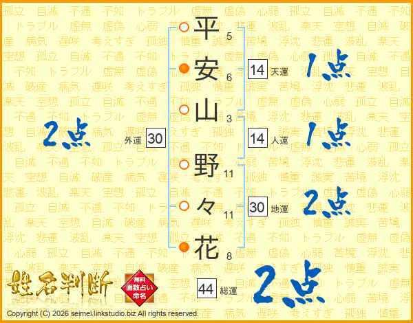 平安山野々花さんの総運は44画の2点!