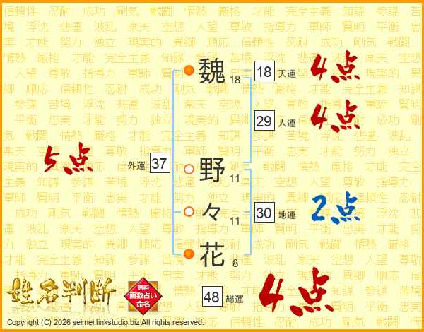 魏野々花さんの総運は48画の4点!