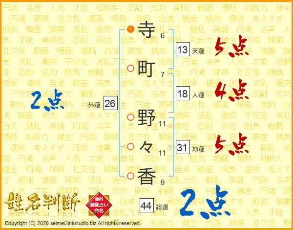 寺町野々香さんの総運は44画の2点!