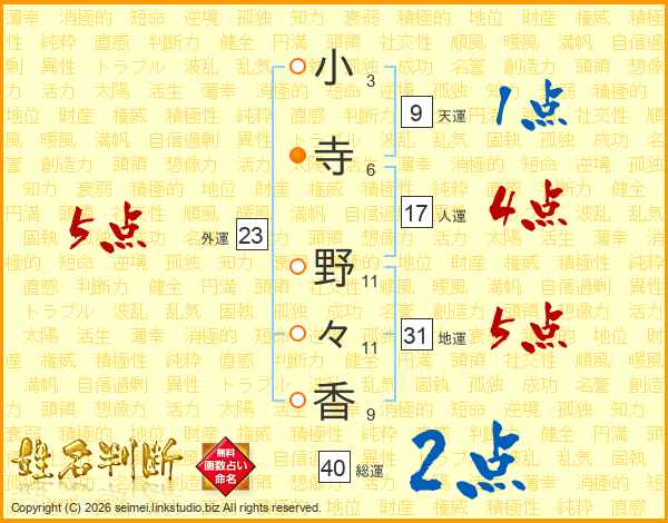 小寺野々香さんの総運は40画の2点!