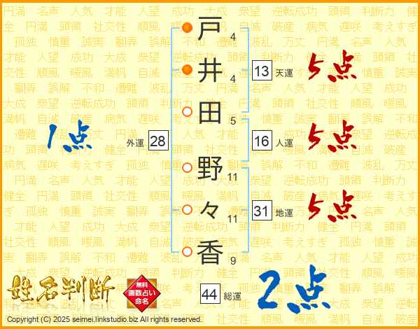 戸井田野々香さんの総運は44画の2点!