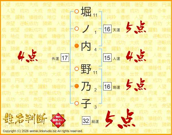 堀ノ内野乃子さんの外運は17画の4点!