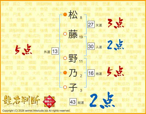松藤野乃子さんの総運は43画の2点!