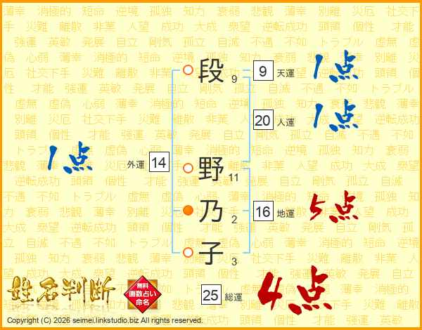 段野乃子さんの総運は25画の4点!