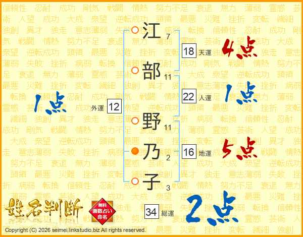 江部野乃子さんの総運は34画の2点!