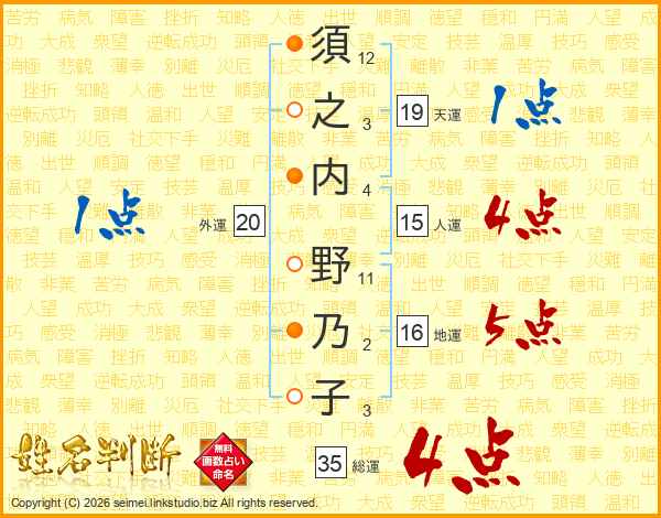 須之内野乃子さんの総運は35画の4点!