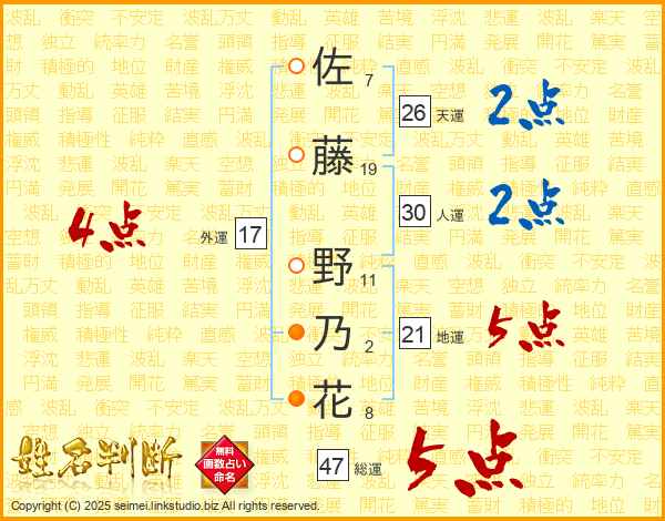 佐藤野乃花さんの総運は47画の5点!