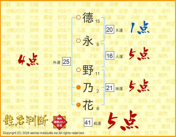 德永野乃花さんの総運は41画の5点!
