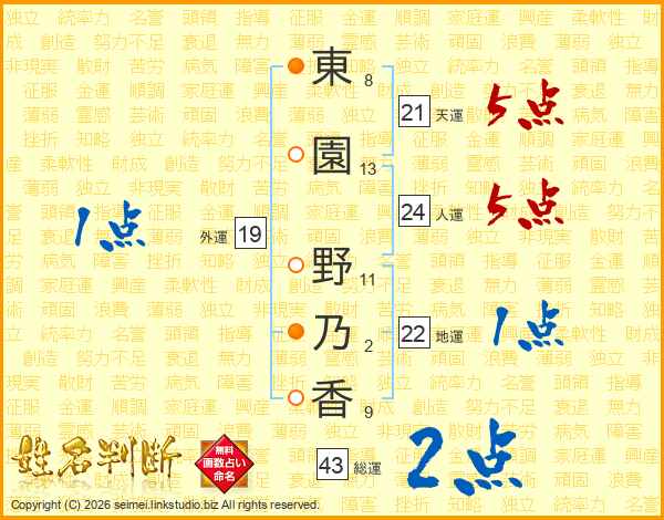 東園野乃香さんの総運は43画の2点!
