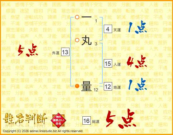 一丸量さんの総運は16画の5点!