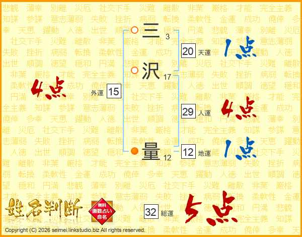 三沢量さんの総運は32画の5点!