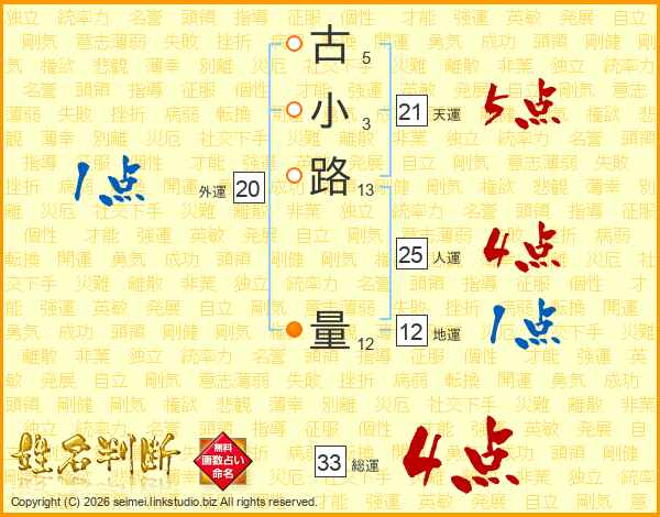 古小路量さんの天運は21画の5点!