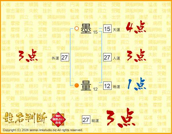 墨量さんの総運は27画の3点!