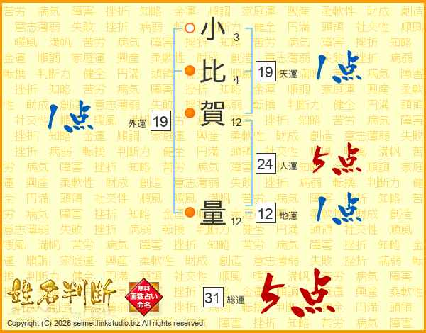 小比賀量さんの総運は31画の5点!