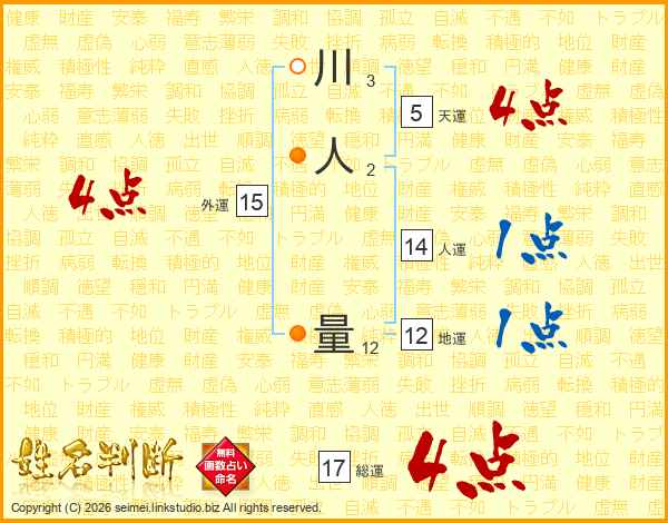 川人量さんの総運は17画の4点!