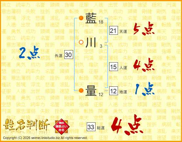 藍川量さんの総運は33画の4点!
