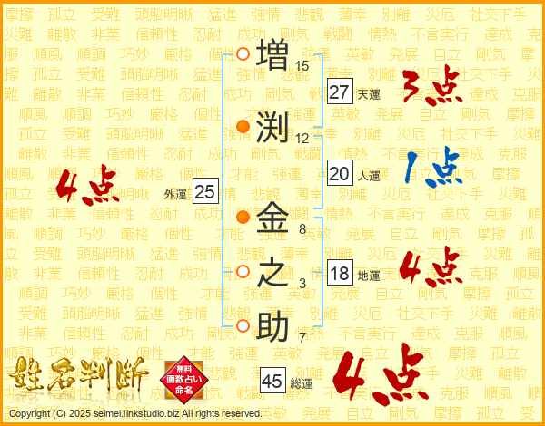増(15画)渕(12画) 金(8画)之(3画)助(7画)