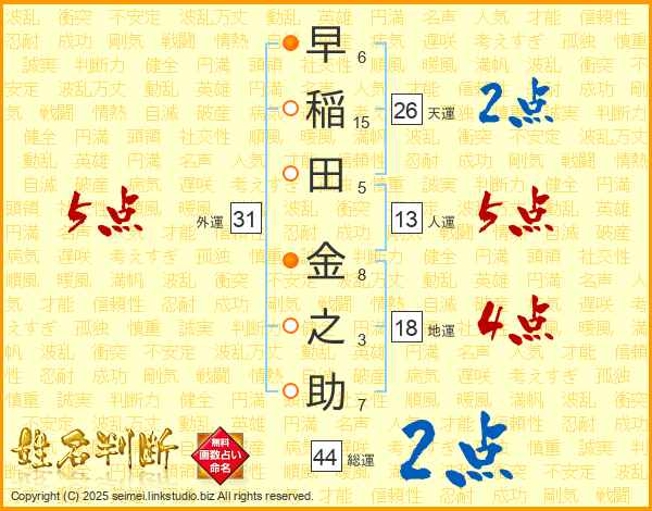 早稲田金之助さんの総運は44画の2点!