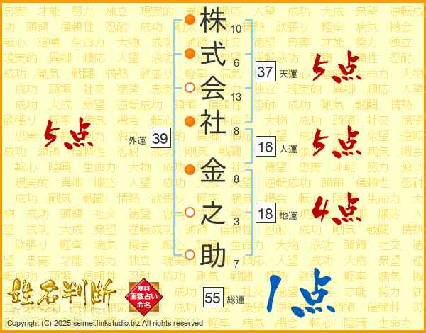 株(10画)式(6画)会(13画)社(8画) 金(8画)之(3画)助(7画)