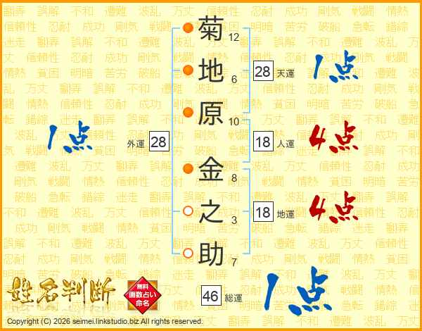 菊地原金之助さんの総運は46画の1点!