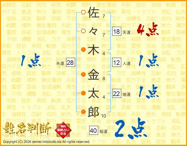 佐々木金太郎さんの総運は40画の2点!