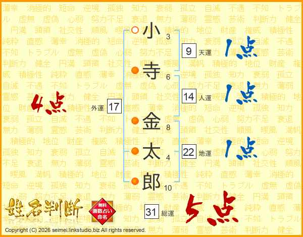小寺金太郎さんの総運は31画の5点!