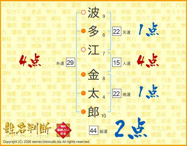 波多江金太郎さんの総運は44画の2点!