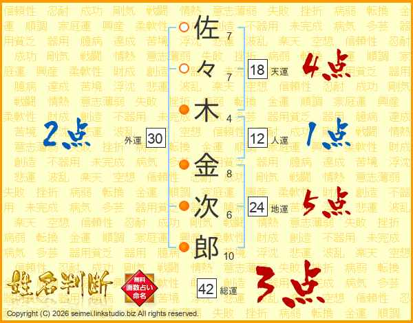 佐々木金次郎さんの総運は42画の3点!