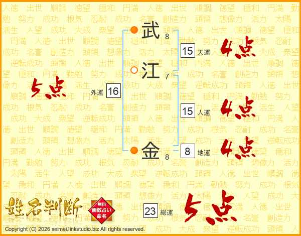武江金さんの総運は23画の5点!