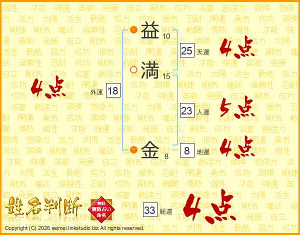 益満金さんの総運は33画の4点!