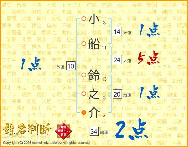 小(3画)船(11画) 鈴(13画)之(3画)介(4画)