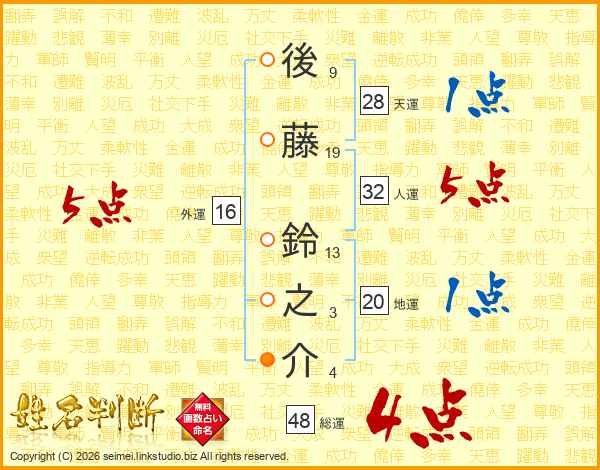 後(9画)藤(19画) 鈴(13画)之(3画)介(4画)