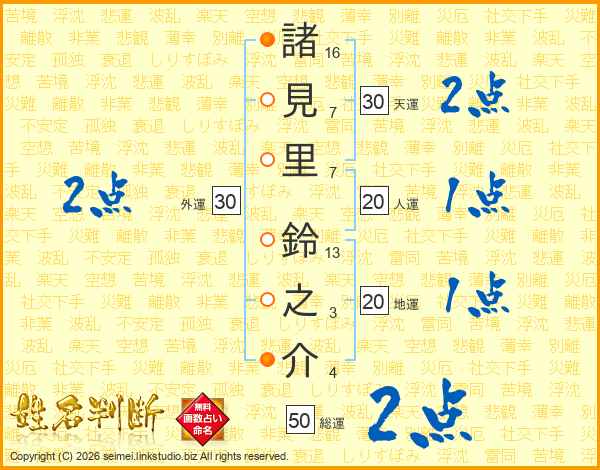 諸見里鈴之介さんの総運は50画の2点!