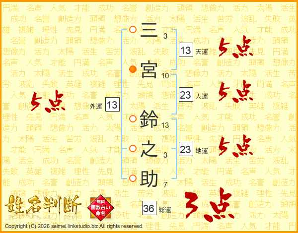 三(3画)宮(10画) 鈴(13画)之(3画)助(7画)
