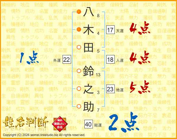 八木田鈴之助さんの総運は40画の2点!